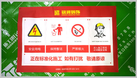 1、施工工地門(mén)口貼地面保護(hù)膜,貼門(mén)貼、設(shè)置滅火器、維護(hù)工地場(chǎng)容。做統(tǒng)一的保護(hù)措施;