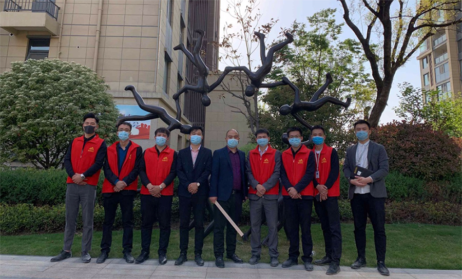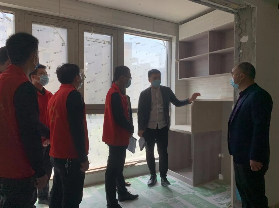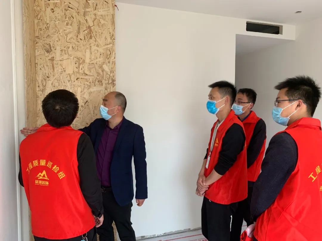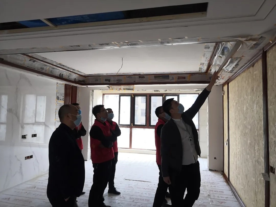 銘洲裝飾集團(tuán)總經(jīng)理組織設(shè)計(jì)部、工程部、客服部以及市場(chǎng)部進(jìn)行工程巡檢,