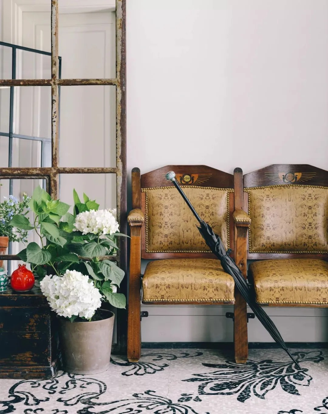 從進(jìn)門的第一眼就讓人很舒服,玄關(guān)處擺放著電影院式的沙發(fā)座椅,旁邊斜斜的躺著她在維也納拍戲時(shí)淘來的雨傘。