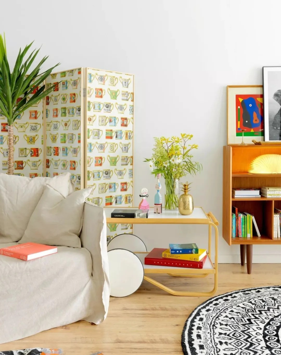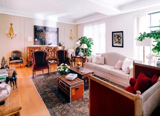 進(jìn)入客廳滿眼的老物件,各個(gè)角落安放著張靜初從世界各地淘回來的各種老家具和古董物件,喜歡這些老物件的她,覺得放在家里很親近、很有人情味。