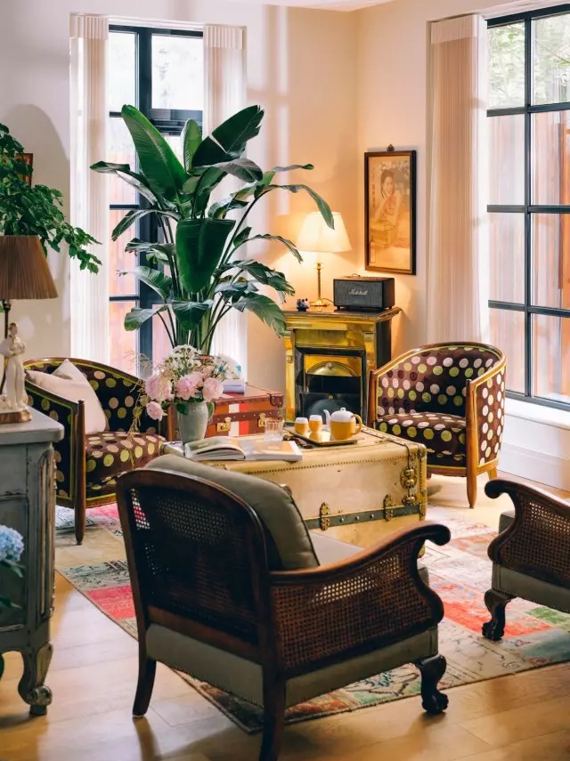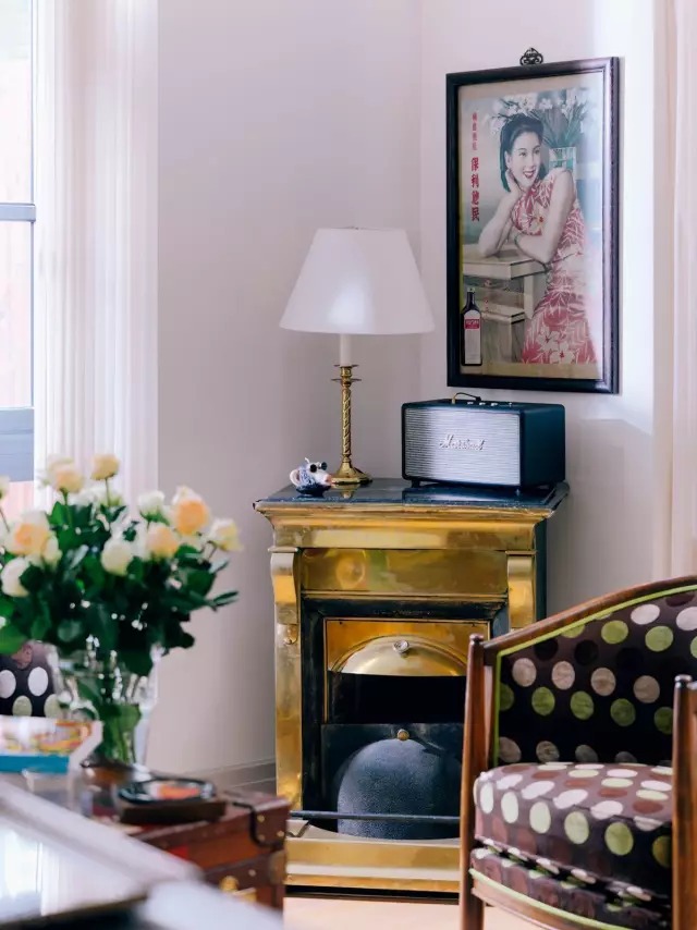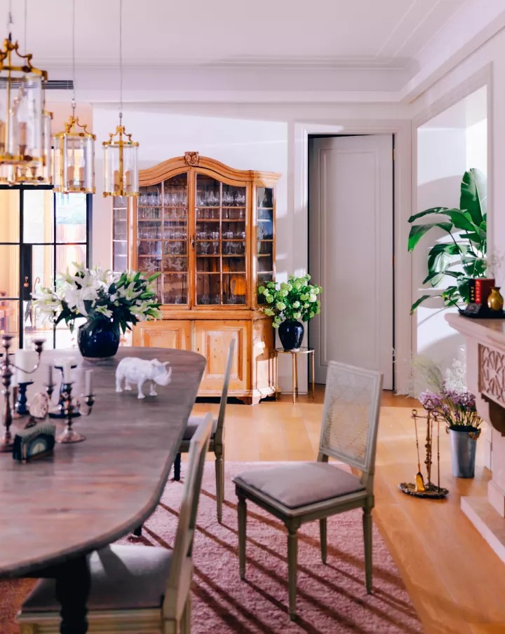 這些復(fù)古的老家具,搭配溫暖的木材料、通透陽光,也恰好烘托出張靜初知性優(yōu)雅的女性氣質(zhì)。