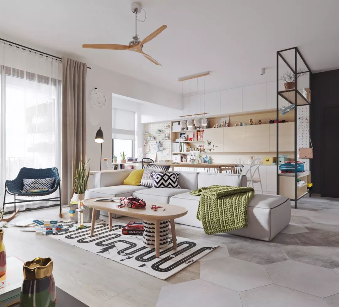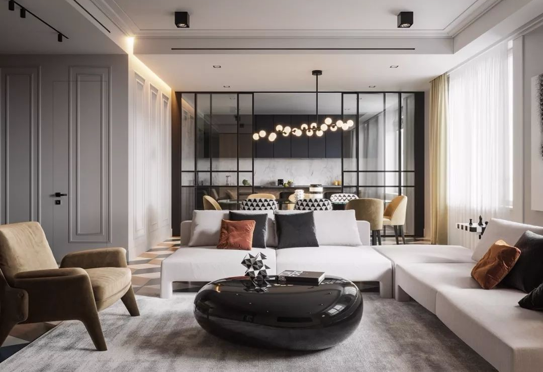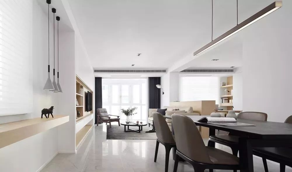 而這些年最 Fashion 的空間布局,莫過于客餐廚一體化了。有些甚至將書房、辦公區(qū)乃至游樂區(qū)納入其中,最大程度地讓視線得到延展,增強(qiáng)家庭交流,乍一看仿佛住在了大別墅里。
