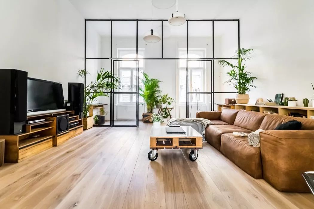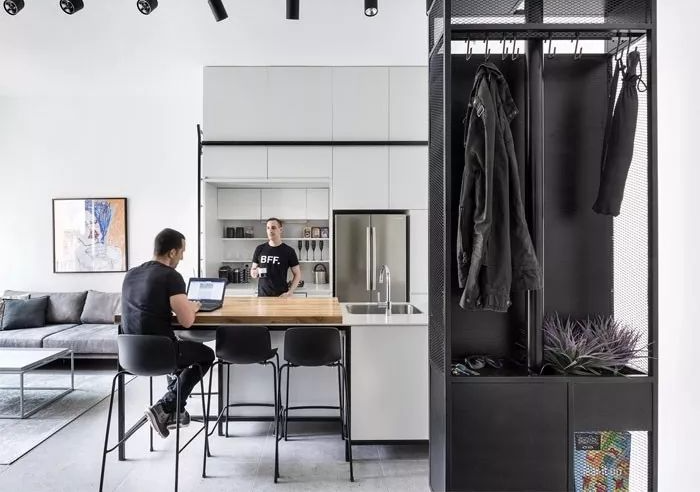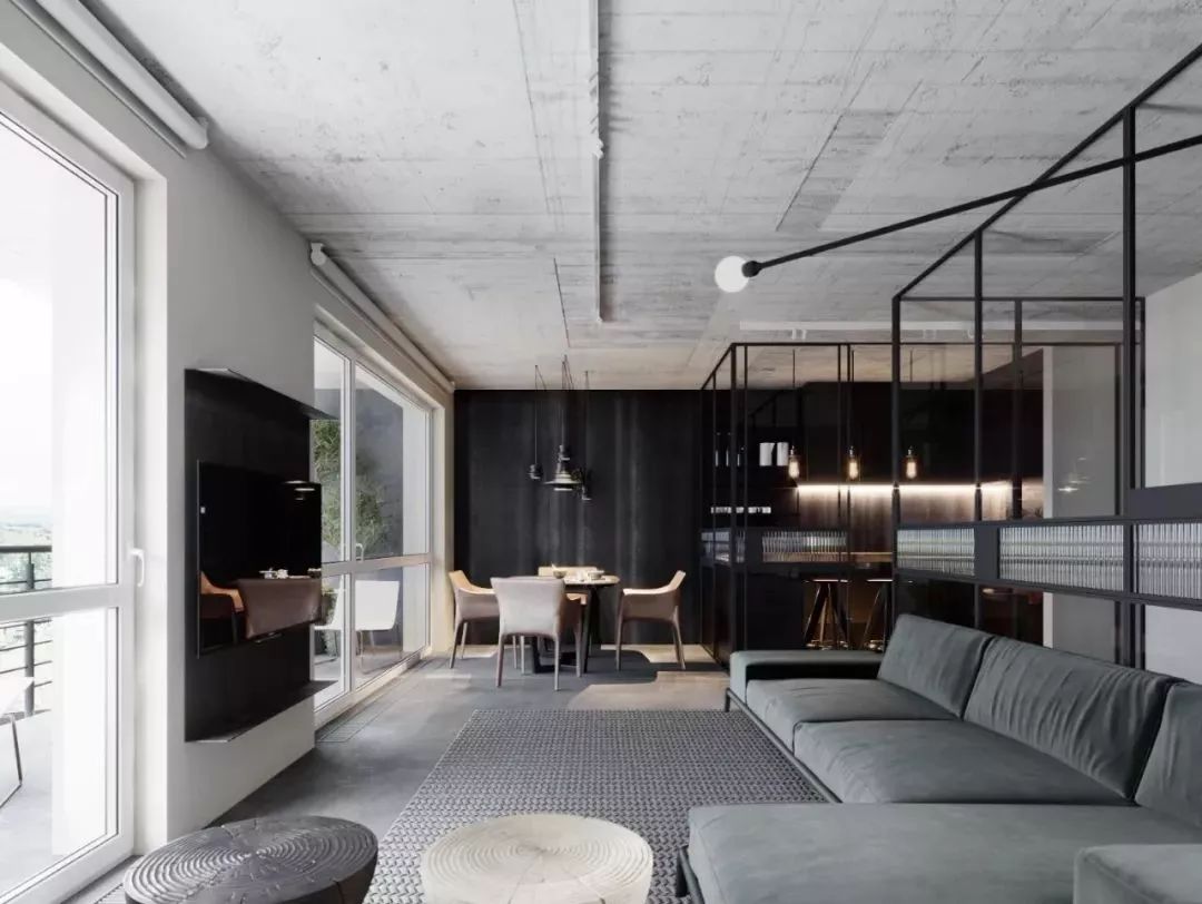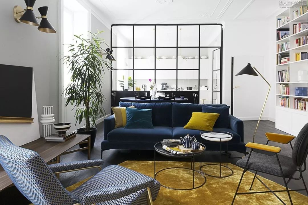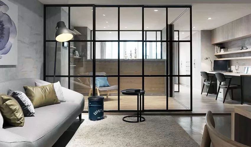 時下流行的隔斷形式有很多,黑框玻璃門是非常理想的功能分區(qū)的辦法。它時尚、精致、“隔而不斷”,而且會讓整個空間都有明亮通透的感覺。
