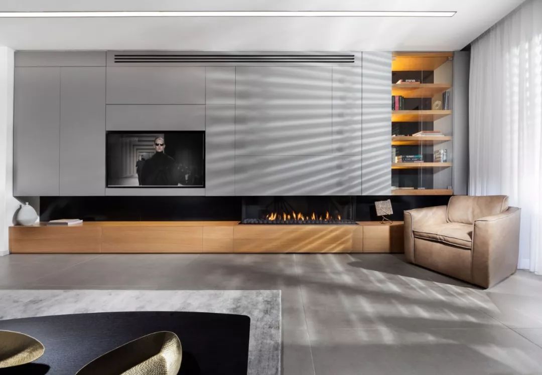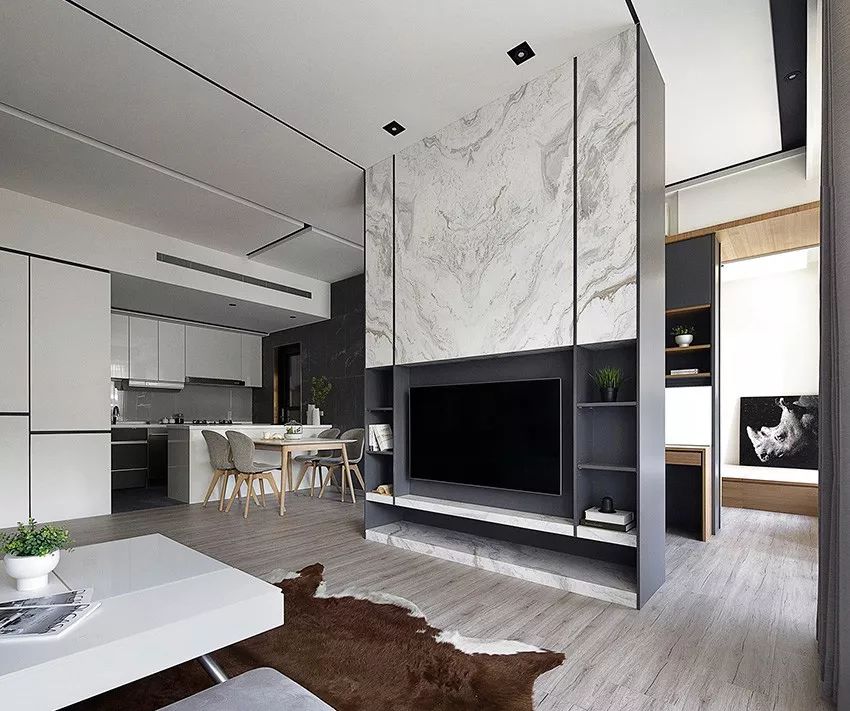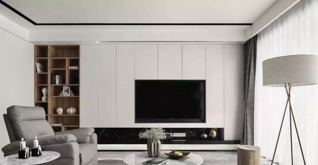對于整個家居設(shè)計來說,這種集美感與功能為一體的電視墻面,不僅盡可能地保留了空間的干凈整潔,而且可以起到輔助收納或展示的作用,使得整體感更強(qiáng)。