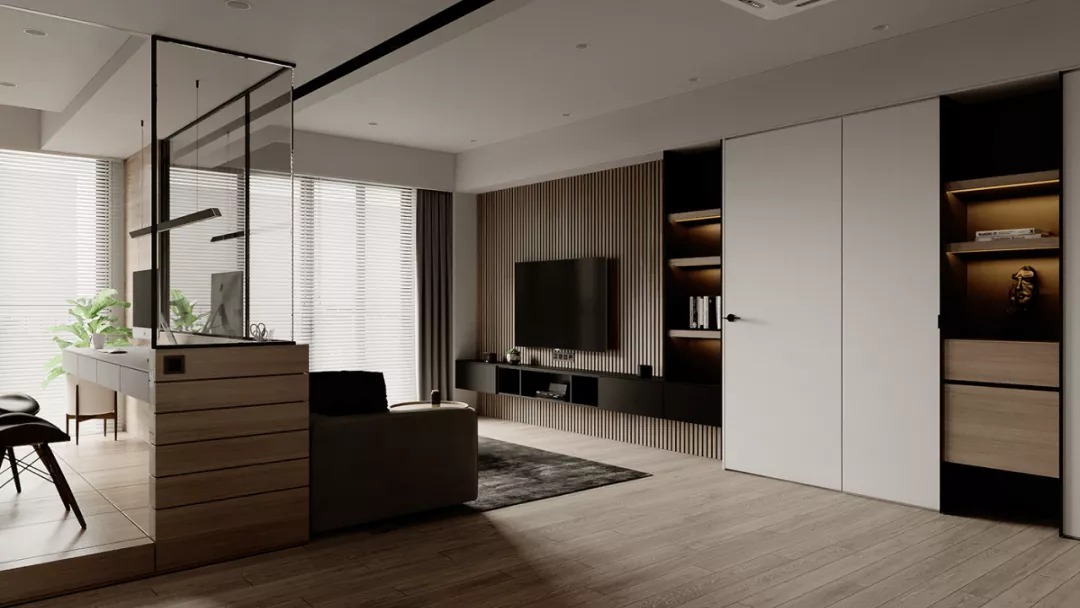可以把收納空間放到電視背景墻上。