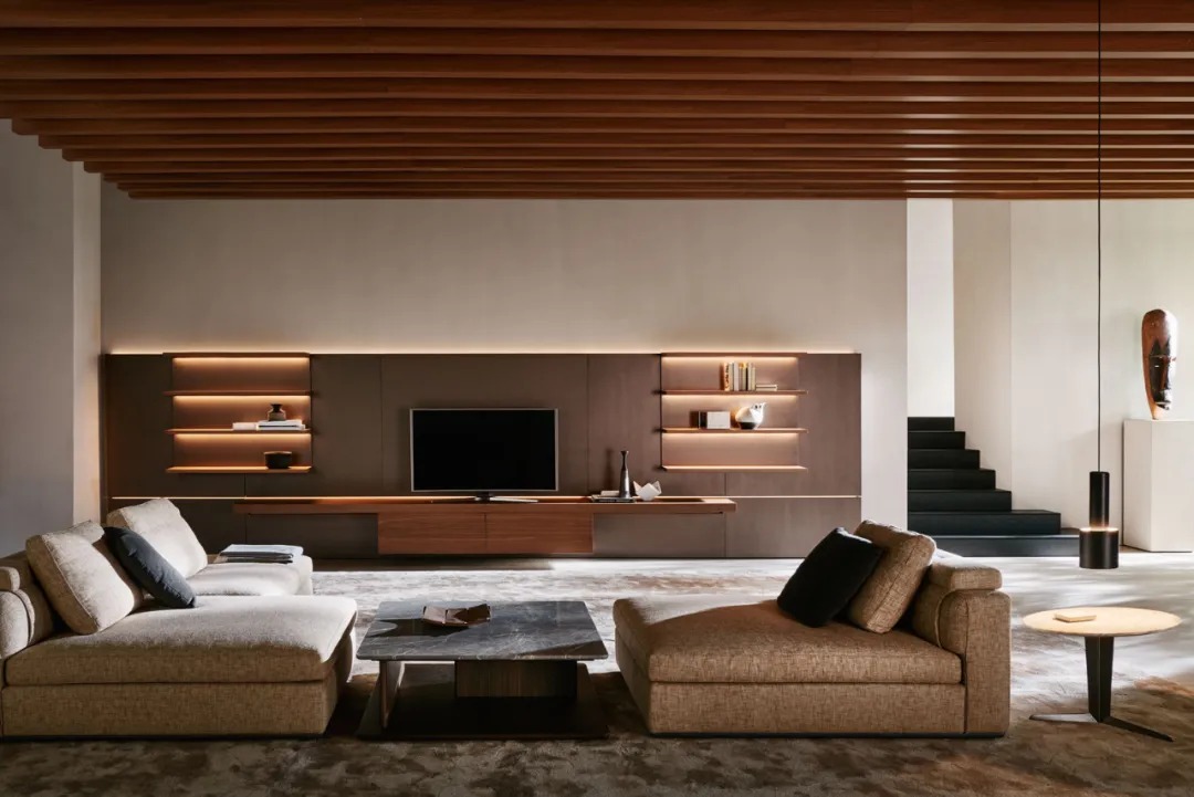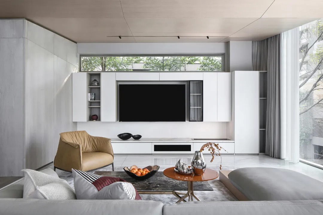 電視背景墻作為整個客廳的聚焦點