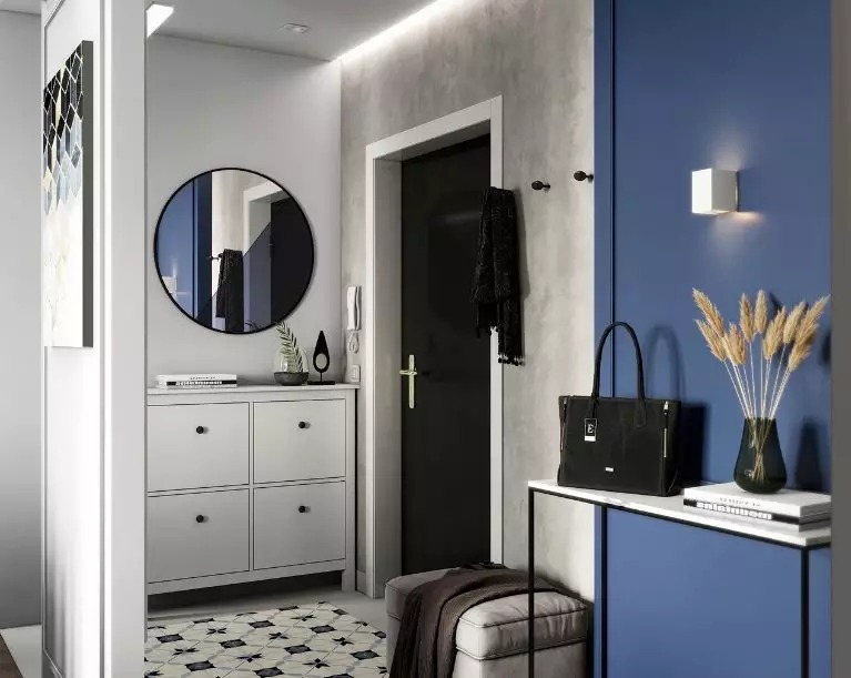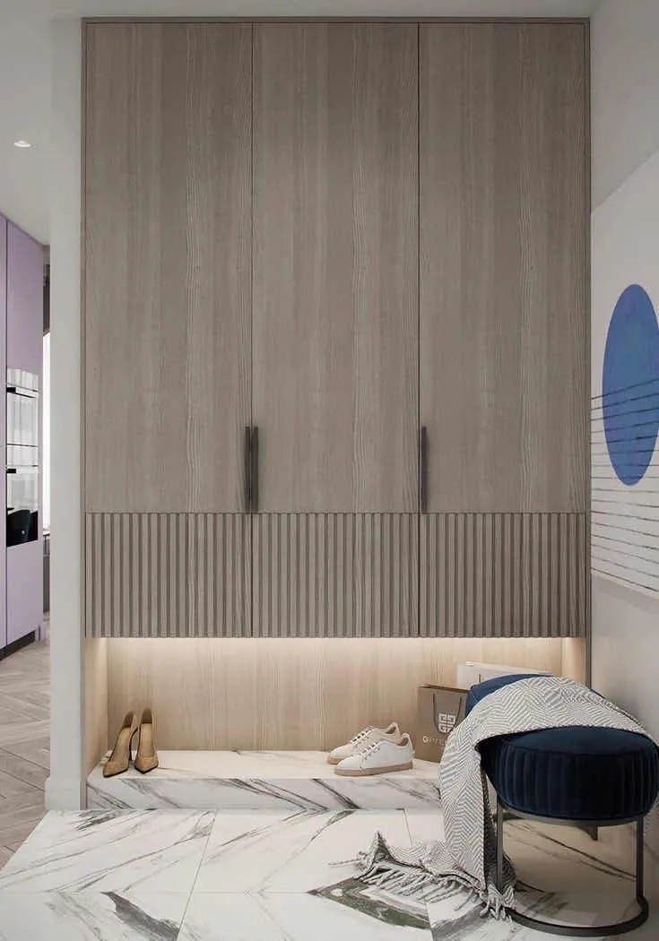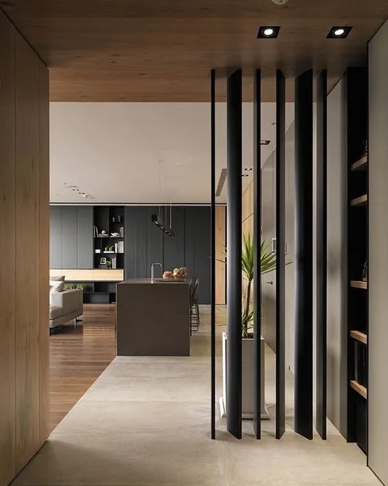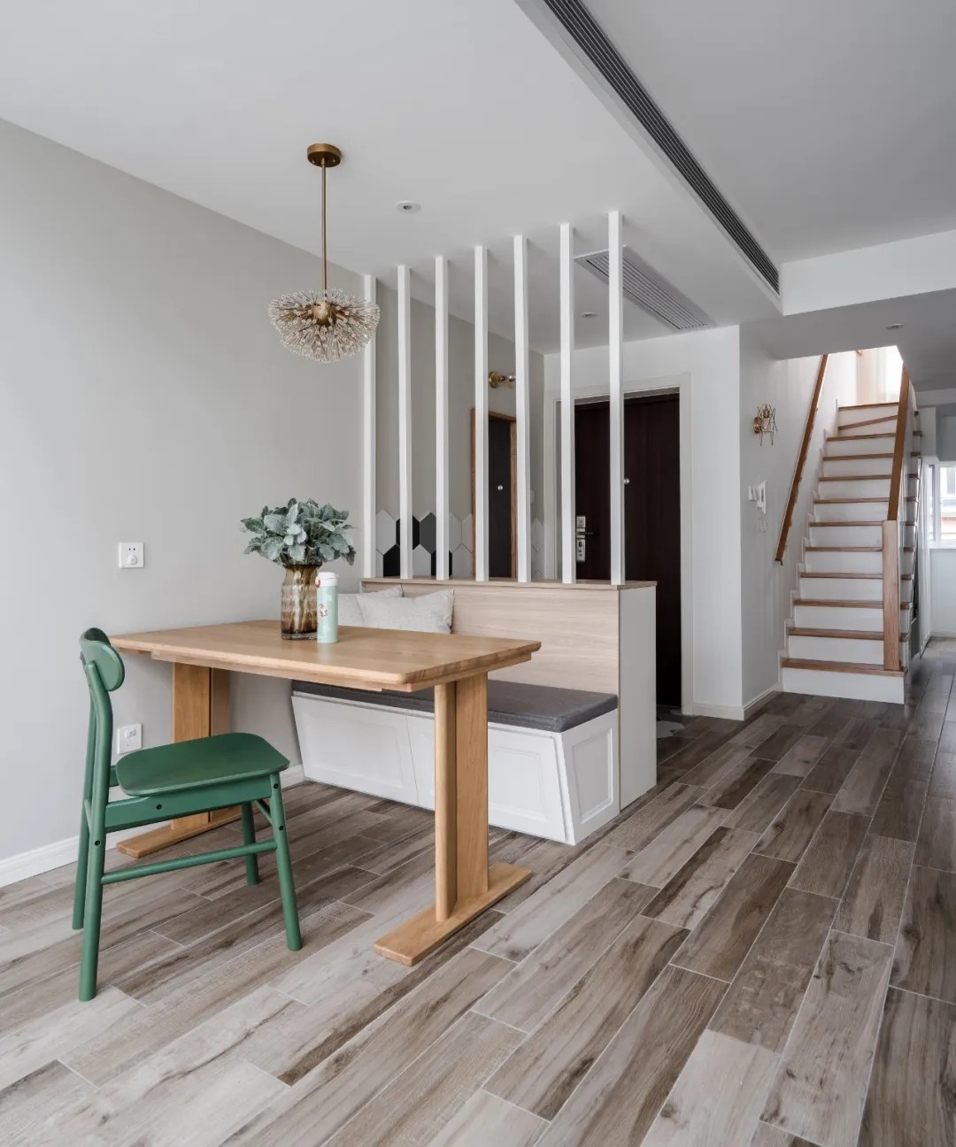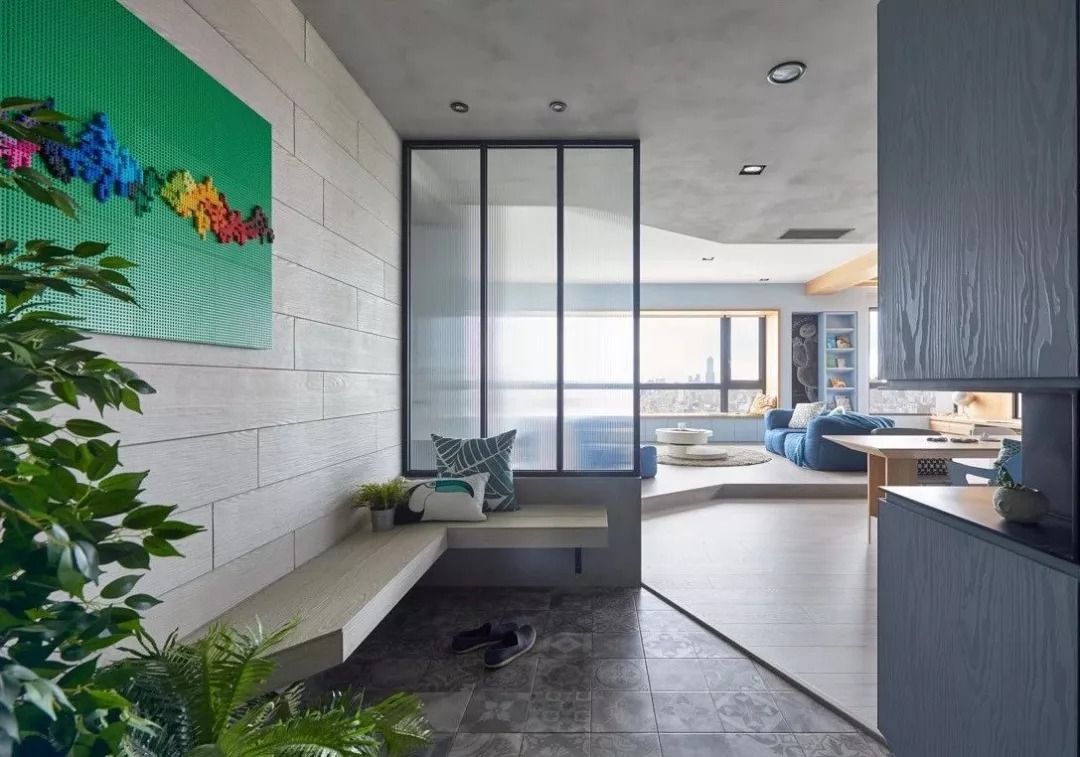 如果入門區(qū)域沒有更多的空間來(lái)設(shè)計(jì)隔斷,可以考慮將衛(wèi)生間的洗手臺(tái)外移,減少日常進(jìn)出衛(wèi)生間的次數(shù),而且洗手臺(tái)外移,能起到一定的遮擋,視覺上起到一定的緩解作用。