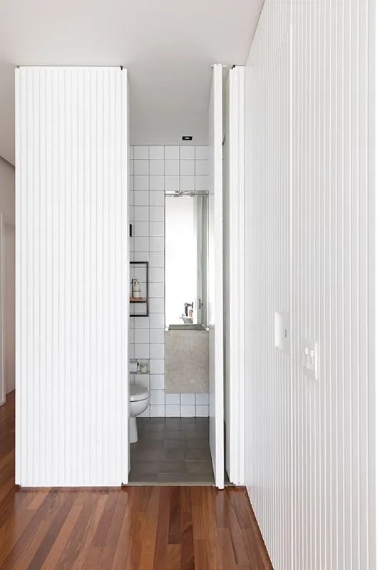 無(wú)論是衛(wèi)生間門還是臥室門,都可以嘗試做隱形式的,而且門最好做成可以自動(dòng)關(guān)閉的,將門“藏”進(jìn)墻里或者柜子里,不開門的時(shí)候完全可以忽略。