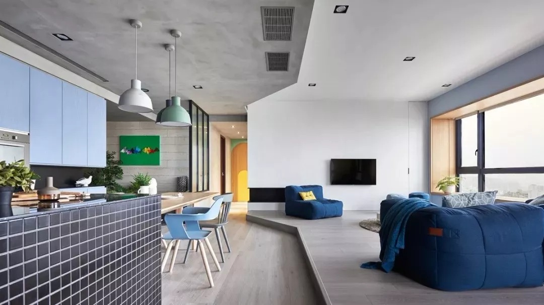 因此客廳這個大開間也不必拘泥于以前的功能,可以根據(jù)自己的需求,做成適合親子活動的休閑區(qū),或者工作室,待客室,茶室等模式。