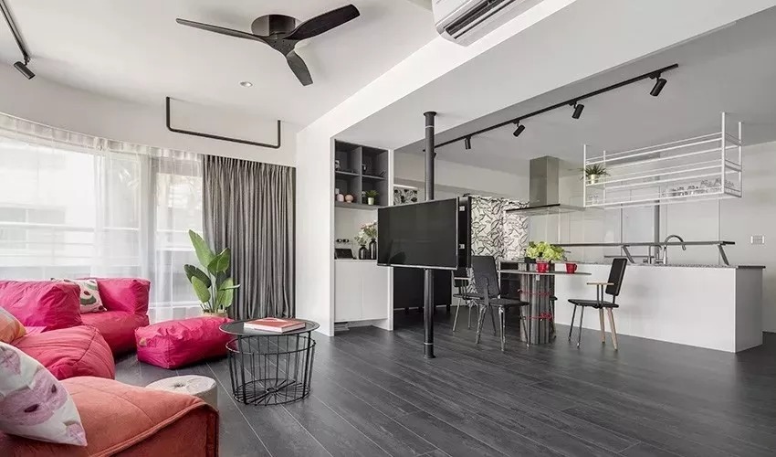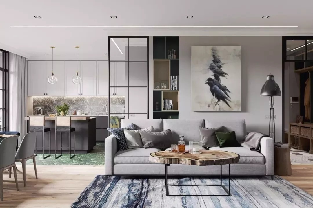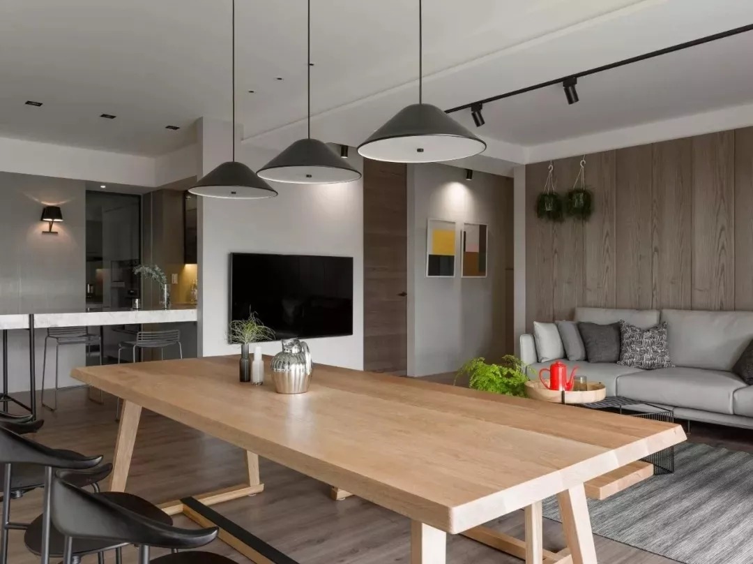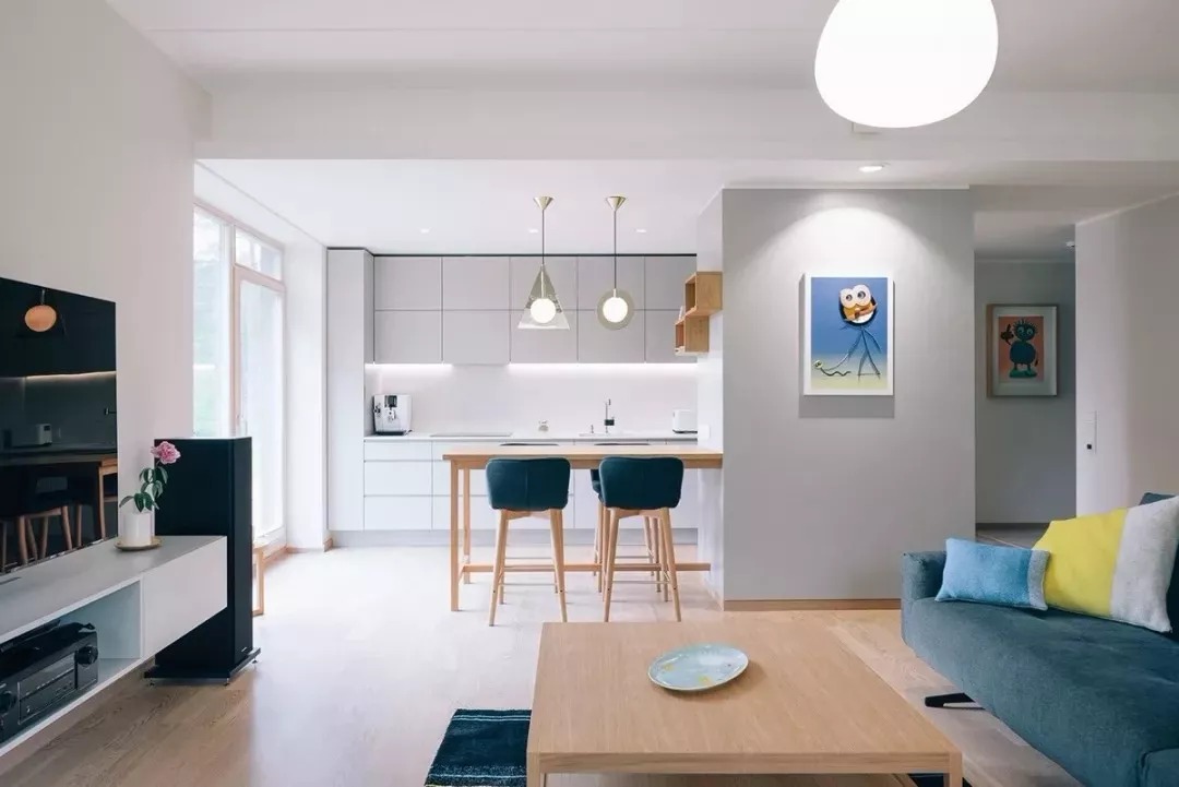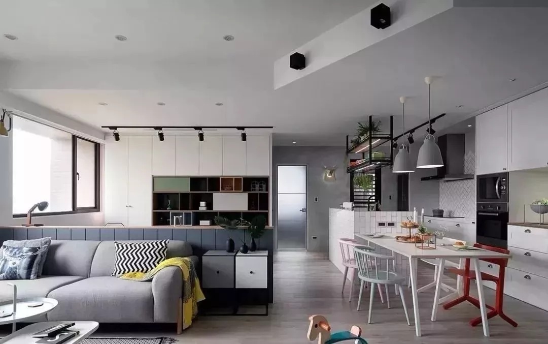 而這些年最 Fashion 的空間布局,莫過于客餐廚一體化了。有些甚至將書房、辦公區(qū)乃至游樂區(qū)納入其中,最大程度地讓視線得到延展,增強(qiáng)家庭交流,乍一看仿佛住在了大別墅里。
