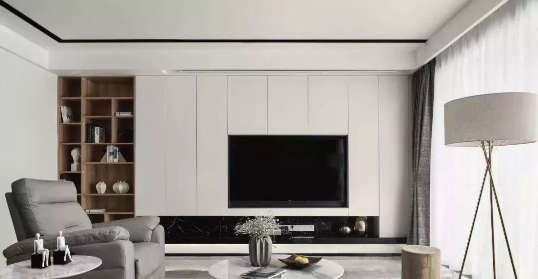 在過去,人們習(xí)慣于將電視墻作為客廳的“重頭戲”,極盡裝飾之能事;而現(xiàn)在,電視墻更加注重功能性,設(shè)計是為了讓生活更加整潔和舒適。簡潔的設(shè)計、充足的收納,讓客廳更具實用性。