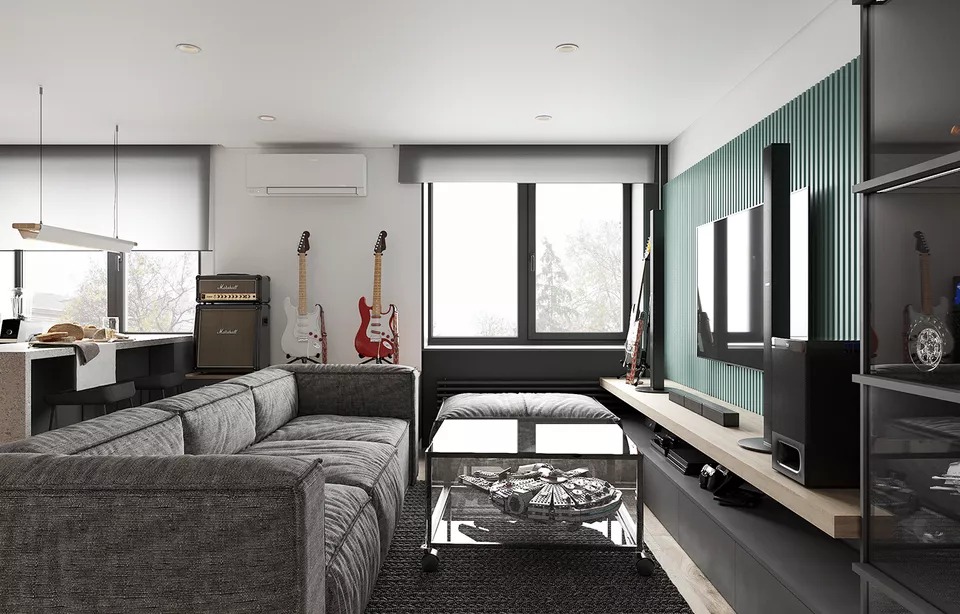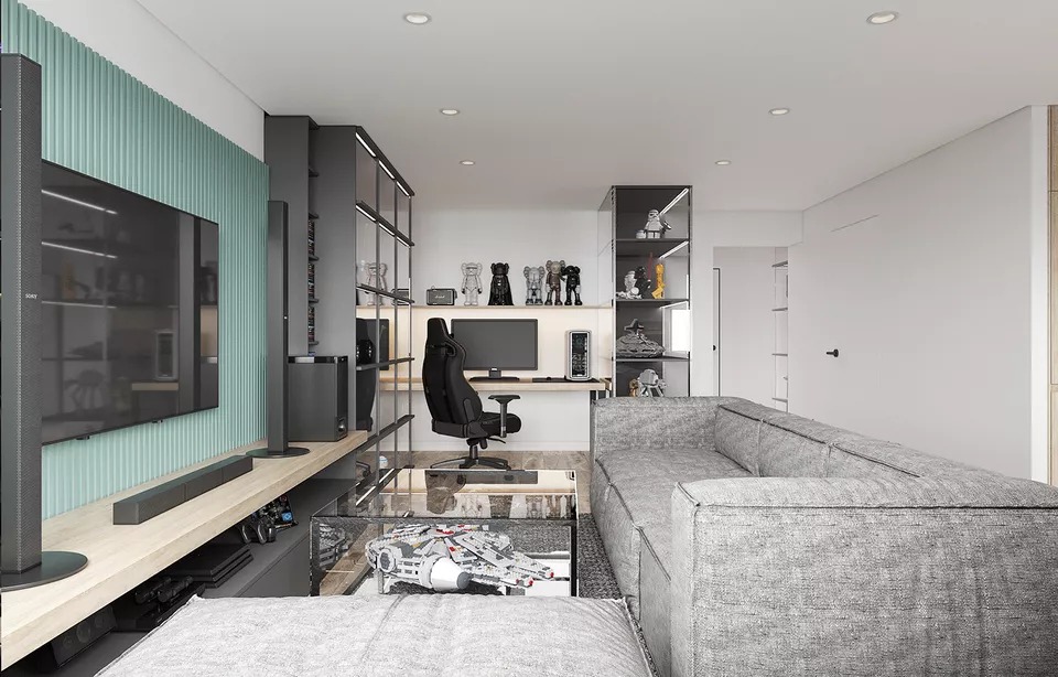 客廳右側是業(yè)主一個集休閑、娛樂的區(qū)域,