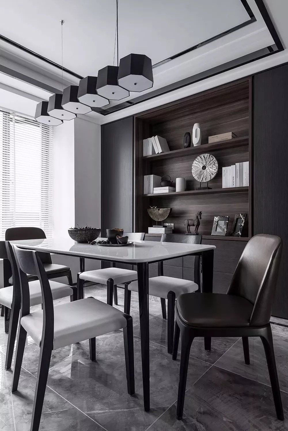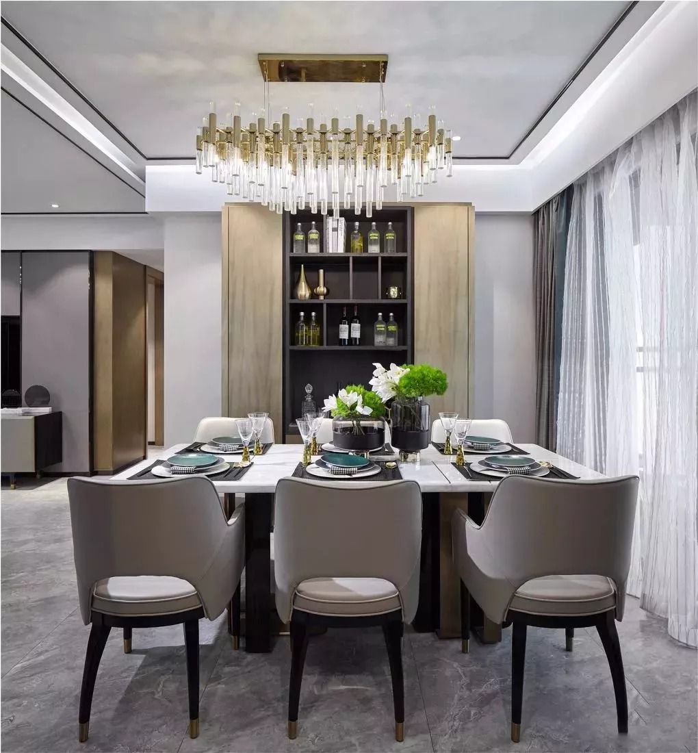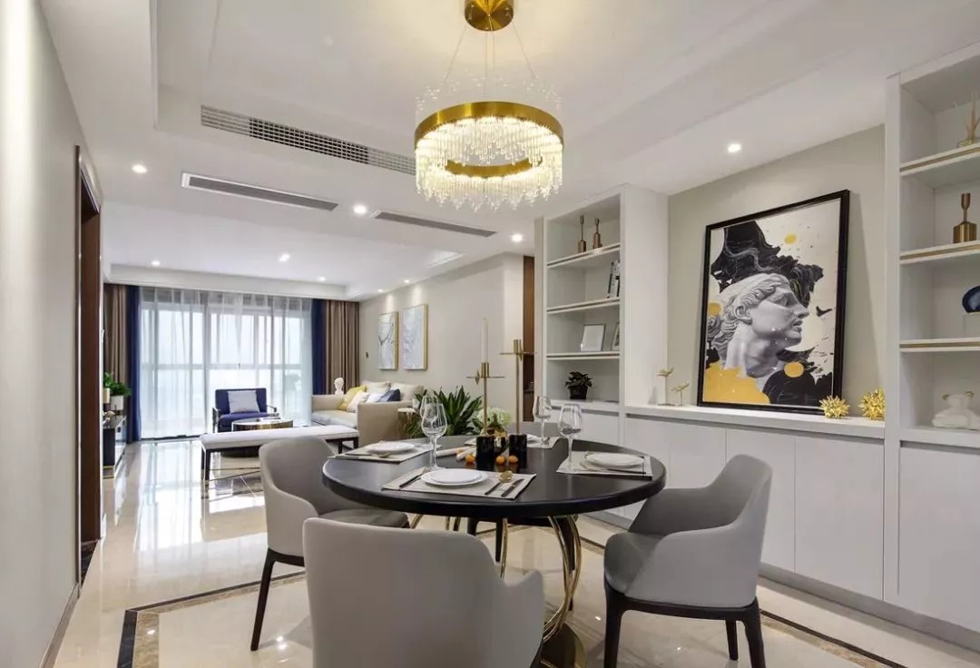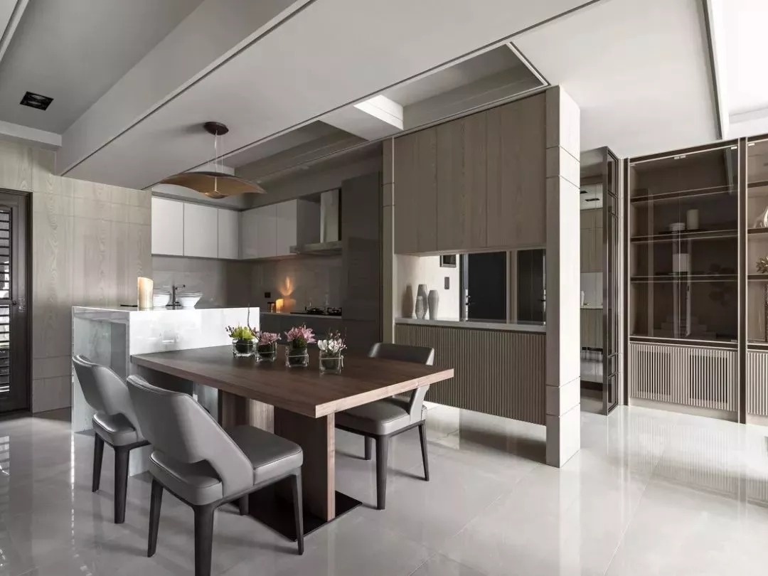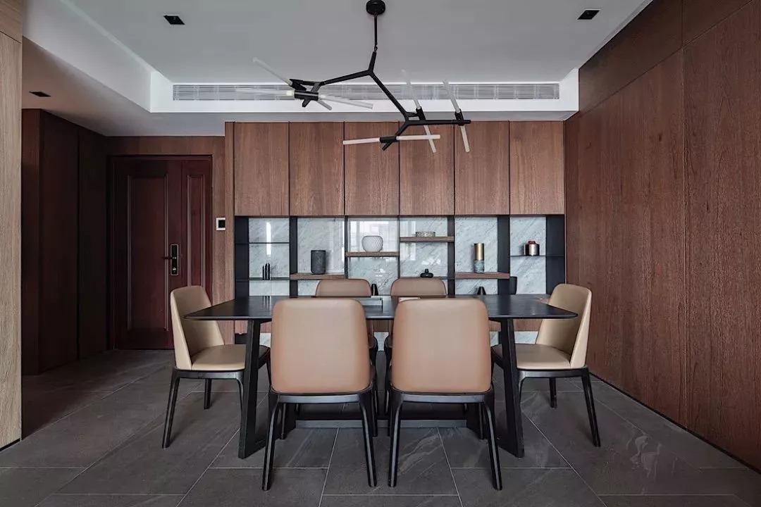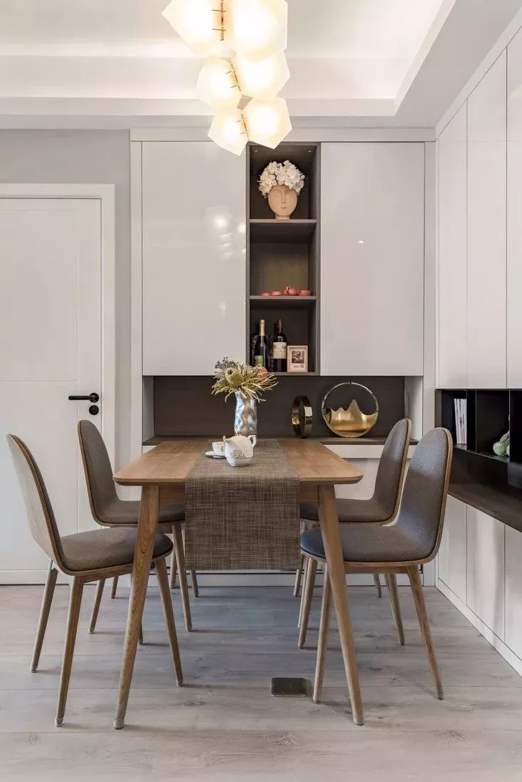 像中式、輕奢簡約等比較莊重的風(fēng)格,則可以選擇較為深色的木質(zhì)感做定制餐邊柜,這樣搭配出來的空間會顯得更加端莊高檔。