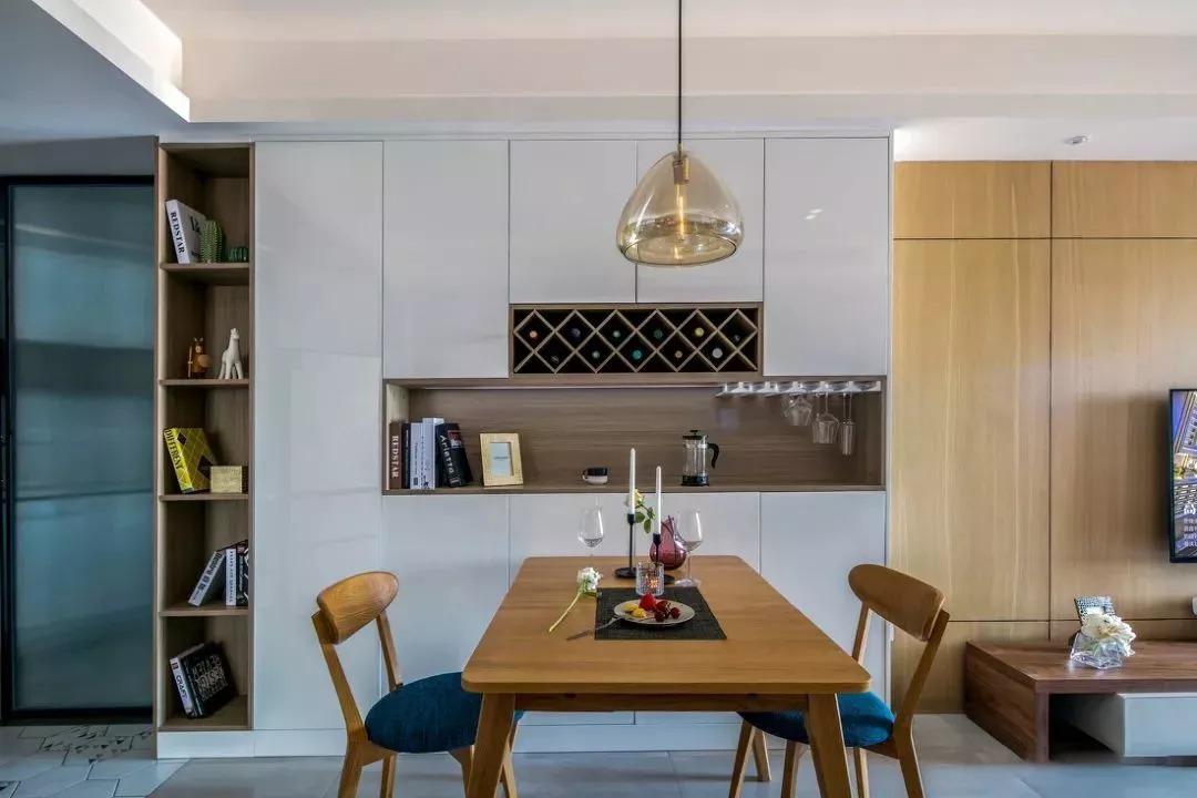 “定制餐邊柜”相比成品的餐邊柜,它可以集餐邊柜+酒柜+收納于一身,