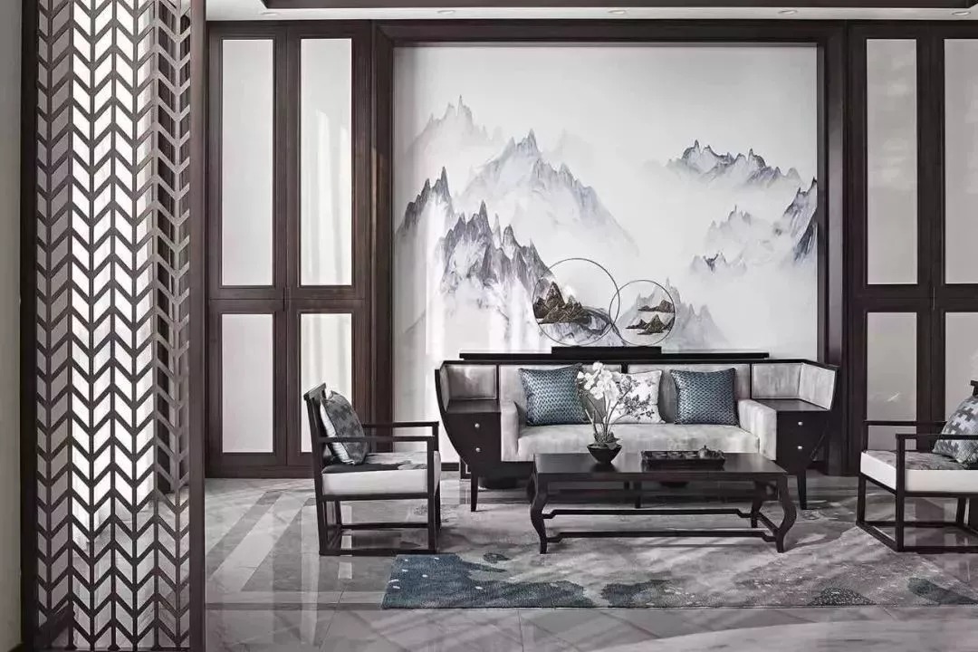 新中式沙發(fā)墻可以是一幅水墨畫(huà),