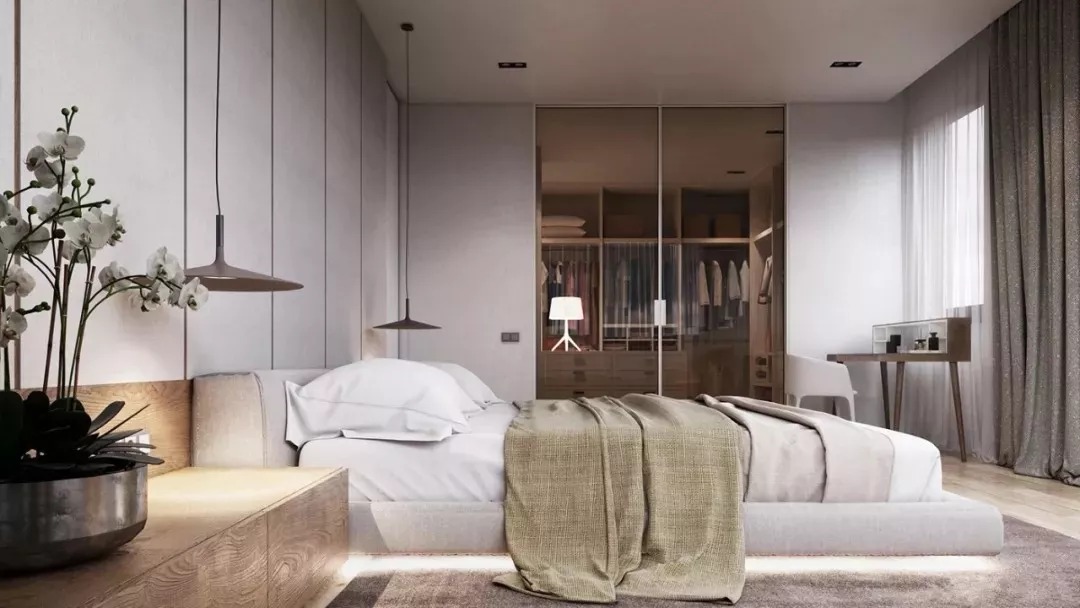 衣帽間最方便的位置就是緊貼臥室。一般來說,只要主臥旁邊的墻體不是承重墻,那我們就有操作空間造出一個衣帽間。