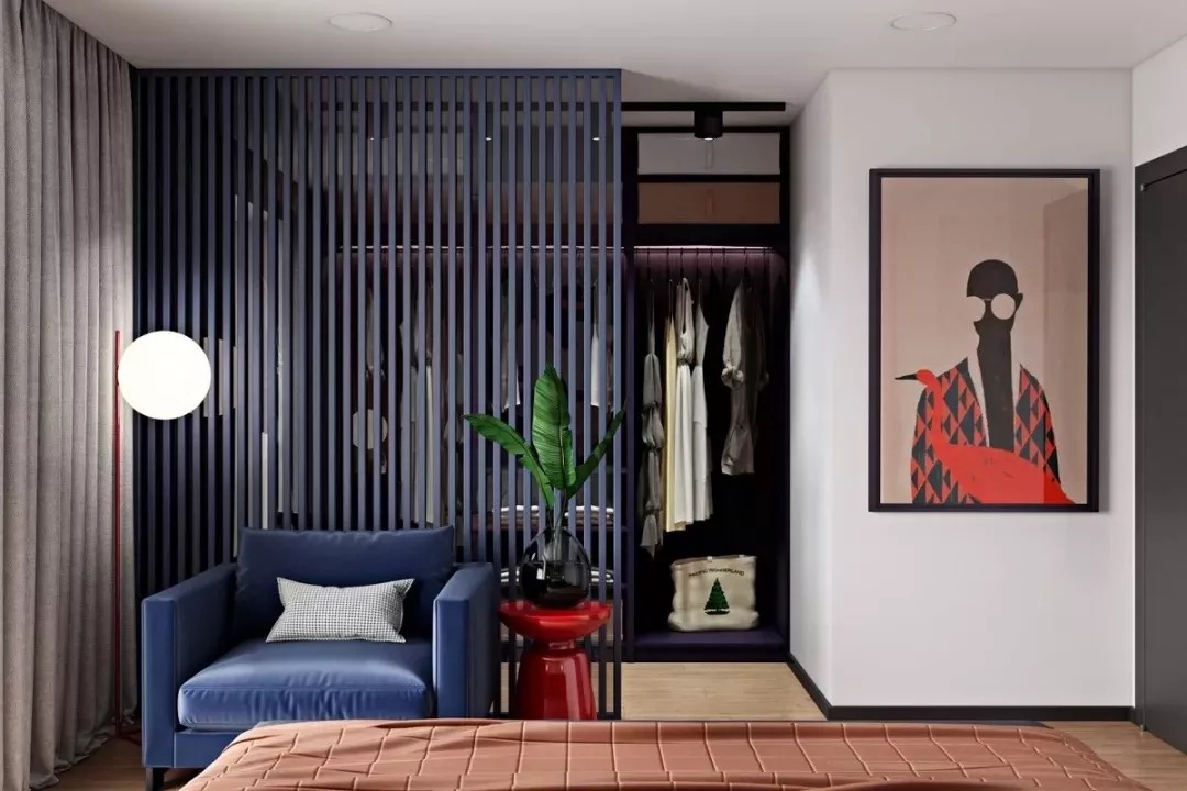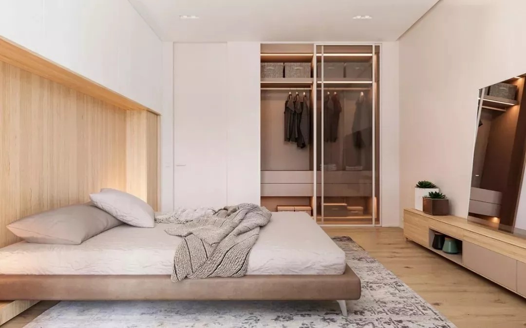 不想犧牲空間的通透感,可以把衣帽間的門改成玻璃或格柵,讓臥室看起來更敞亮。