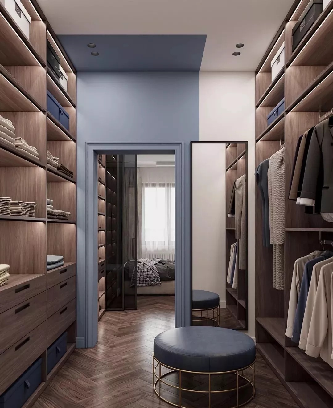 相比于房間內(nèi)大大小小的柜子,衣帽間的優(yōu)勢非常明顯:做到衣物集中收納,減少過多家具對房間的瓜分,提高空間使用率。