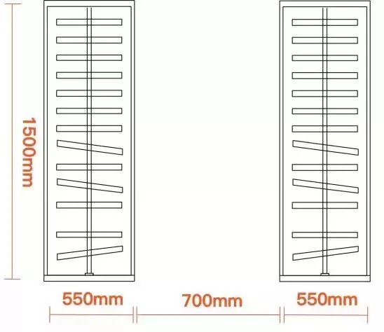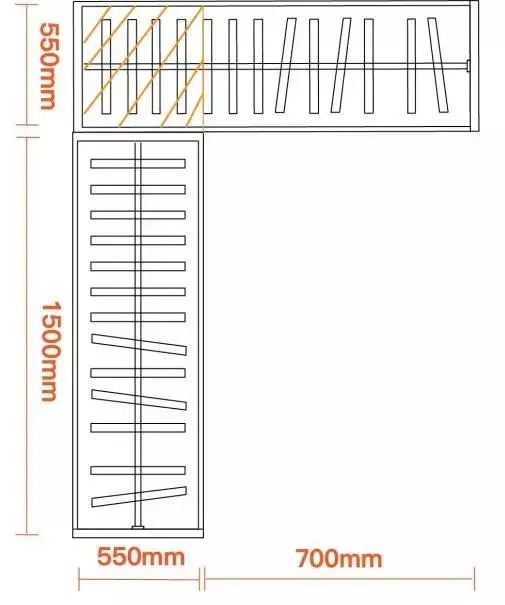 小型衣帽間形狀一般以L型和二字型為主,如果L型和二字型,兩邊都放550mm進深,長1500mm的柜子,算下來,L型布局需要2.56㎡,二字型需要2.7㎡。大家可以根據(jù)衣帽間的形狀自行